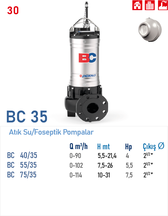 Ürün AdıDebi ( Q m³/h )Bas. Yük. (mSS)FiyatSatın AlBC 40/3590185, 5-1891.021,95 ₺ + KDVSepete Ekle 2785BC 55/35102185, 5-22, 799.356,10 ₺ + KDVSepete Ekle 3040BC 75/351141810-27, 5103.278,05 ₺ + KDVSepete Ekle 3160