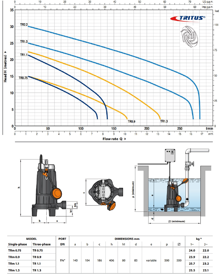 Dalgıç Pompalar, TRITUS 0,75 SERİSİ