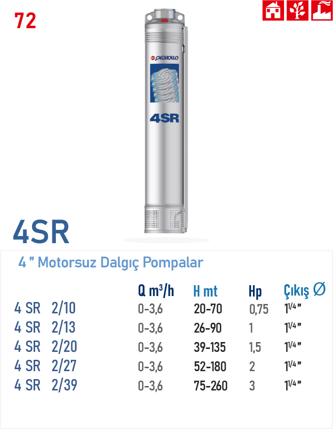 Ürün AdıDebi ( Q m³/h )Bas. Yük. (mSS)FiyatSatın Al4 SR 2/103, 620-6811.961,95 ₺ + KDVSepete Ekle 3664 SR 2/133, 626-8813.530,73 ₺ + KDVSepete Ekle 4144 SR 2/203, 639-13016.799,02 ₺ + KDVSepete Ekle 5144 SR 2/273, 652-17318.858,05 ₺ + KDVSepete Ekle 5774 SR 2/393, 675-25024.839,02 ₺ + KDVSepete Ekle 760