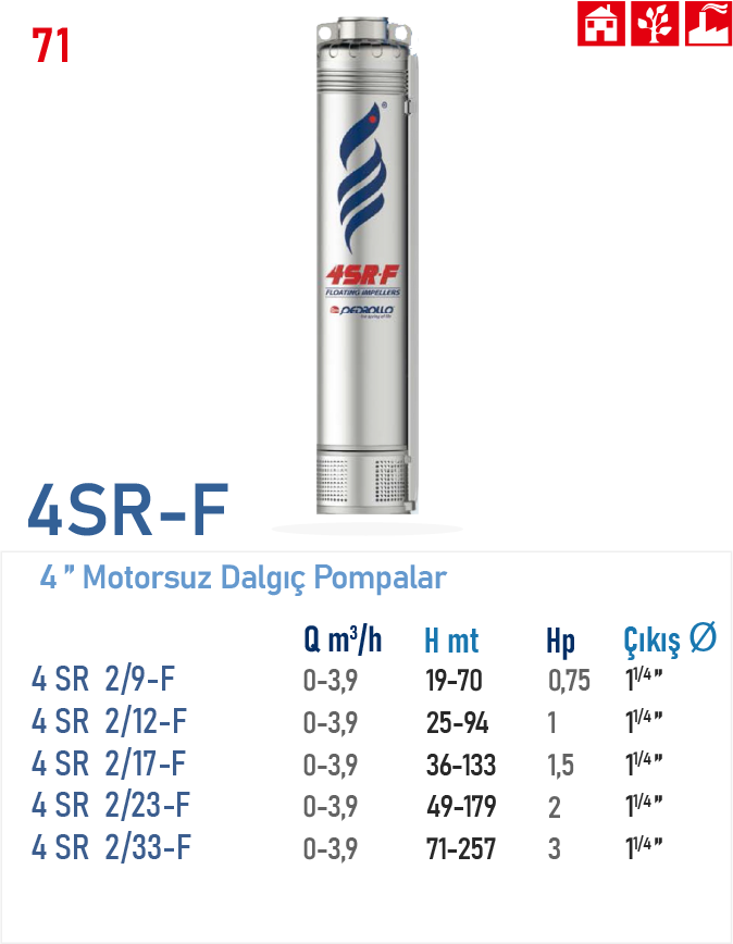 2, 3, 91 25-84 414 2, 3, 91 36-119 514 2, 3, 91 49-161 577 2, 3, 91 71-231 760 2, 3, 91 19-63 366Ürün Adı Debi ( Q m³/h ) Bas. Yük. (mSS) Fiyat Satın Al 4 SR 2/12 - F 13.530,73 ₺ + KDV4 SR 2/17 - F 16.799,02 ₺ + KDV4 SR 2/23 - F 18.858,05 ₺ + KDV4 SR 2/33 - F 24.839,02 ₺ + KDV4 SR 2/9 - F 11.961,95 ₺ + KDV