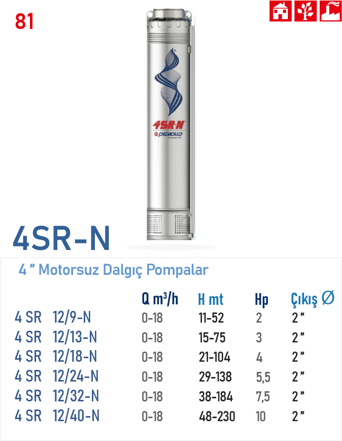 183 15-68 650 183 21-94 834 183 29-126 1080 183 38-168 1330 183 48-210 1560 183 11-47 540Ürün Adı Debi ( Q m³/h ) Bas. Yük. (mSS) Fiyat Satın Al 4 SR 12/13 - N 21.243,90 ₺ + KDV4 SR 12/18 - N 27.257,56 ₺ + KDV4 SR 12/24 - N 35.297,56 ₺ + KDV4 SR 12/32 - N 43.468,29 ₺ + KDV4 SR 12/40 - N 50.985,37 ₺ + KDV4 SR 12/9 - N 17.648,78 ₺ + KDV